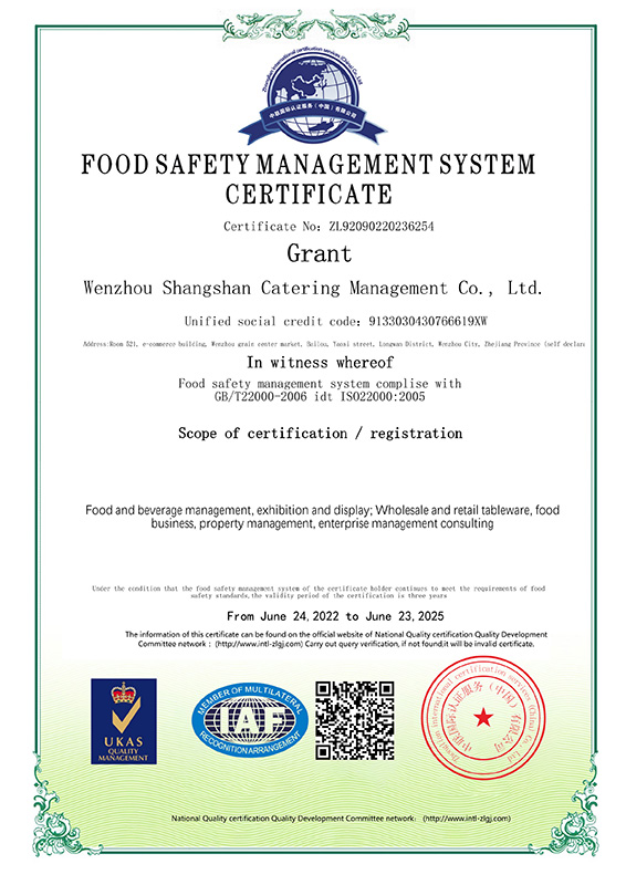 首頁>企業(yè)資質(zhì) > 食品安全管理體系證書 英文版企業(yè)資質(zhì)